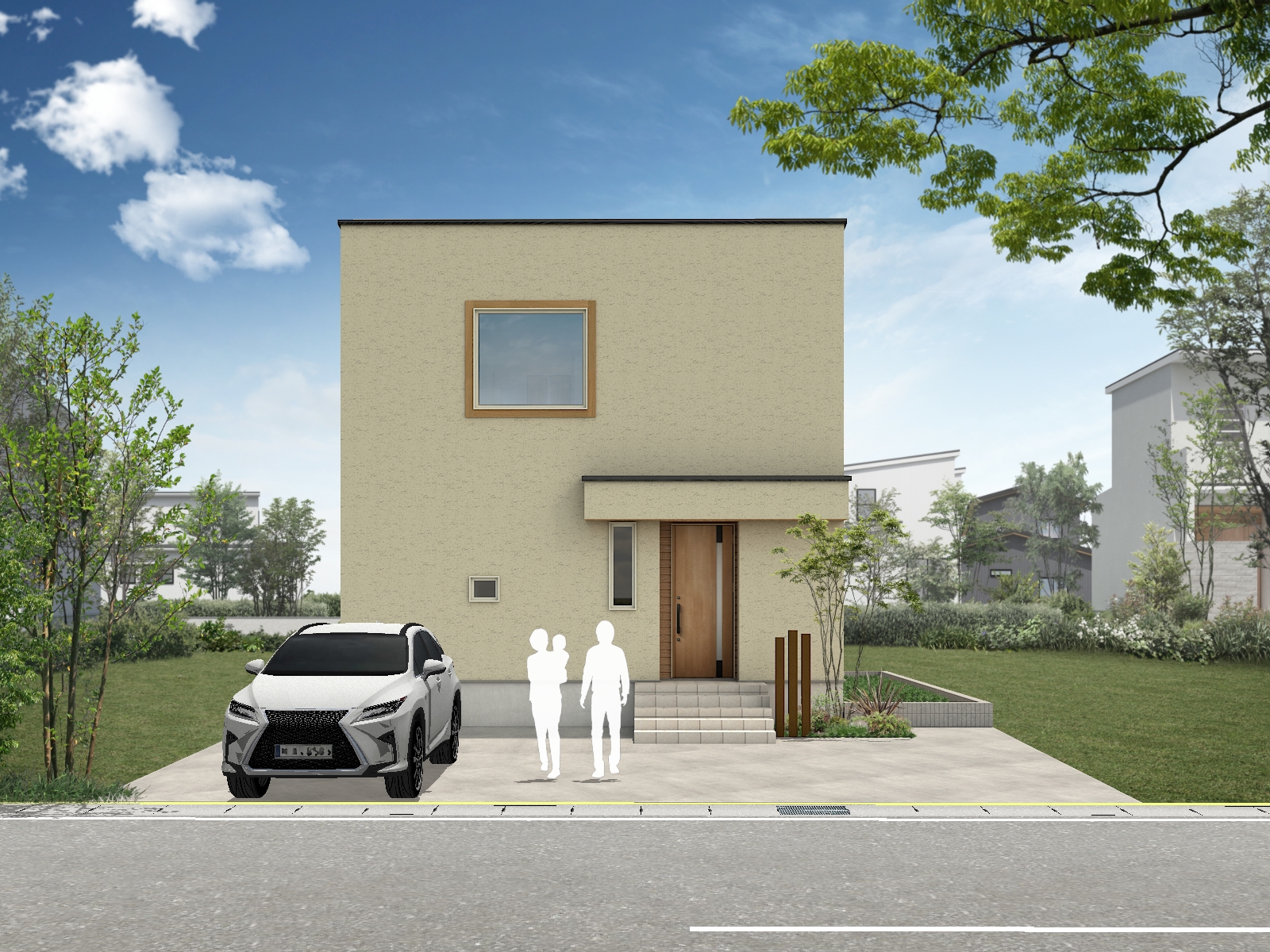 • 正面の大きな窓が印象的なナチュラルモダンな外観