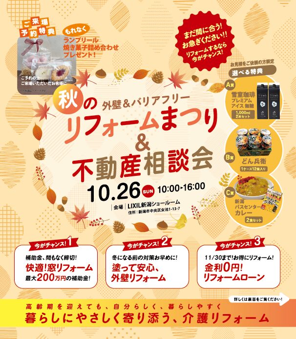 まもなく新潟の長く寒い冬がやってきます!その前に、費用を抑えて賢くリフォーム!