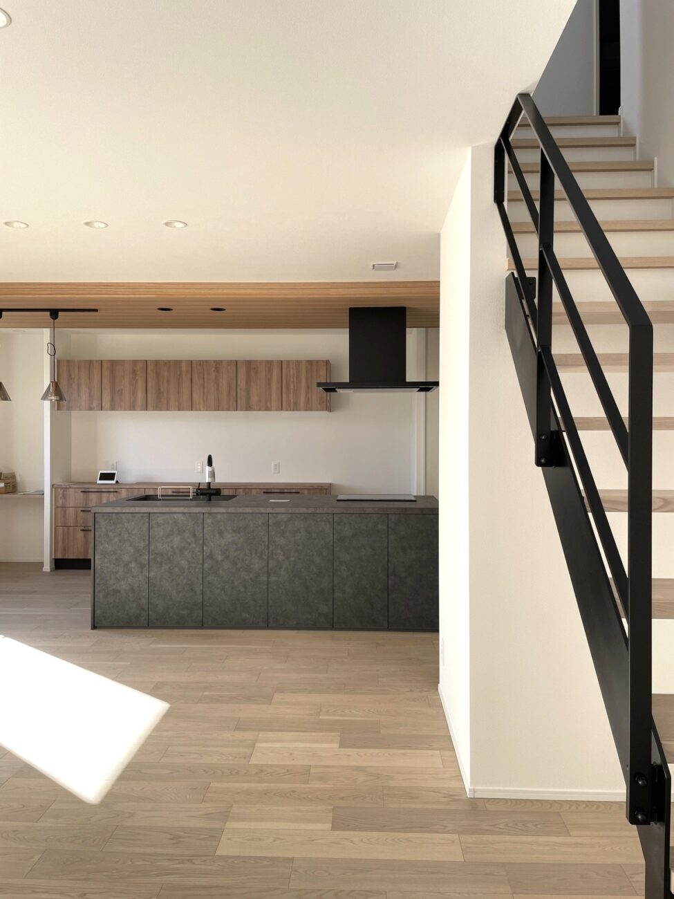 • スチールストリップ階段と高天井が生む、開放感あふれるLDK。