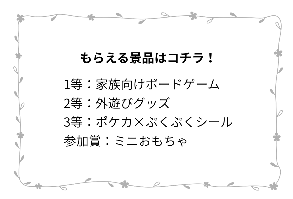 残念ながらはずれてしまっても、参加賞として「ミニおもちゃ」がもらえます。